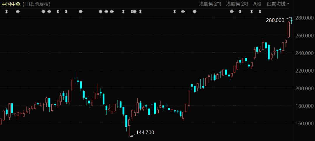 中国中免股价表现(上市至今)