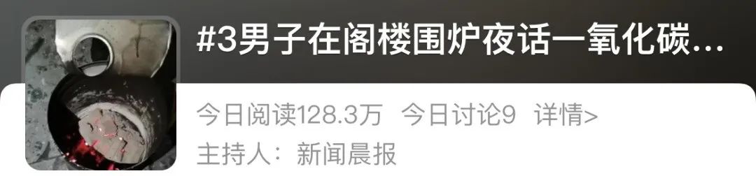 3名男子在阁楼围炉夜话,把酒言欢近6小时,最终一氧化碳中毒。所幸,经过救治,脱离了生命危险。