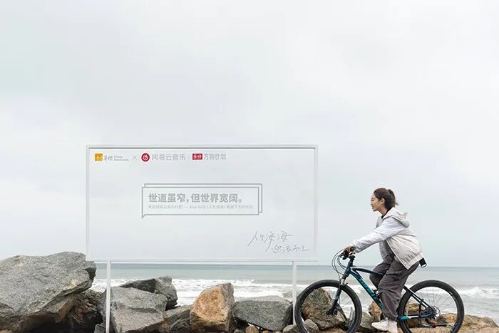 春节期间,网易云音乐做了一件极其有趣的事情,在海岸线上打造了一条走下来充满意义的乐评公路,把网易云音乐用户对五月天《人生海海》这首歌的人生感悟做成一块透明的路牌,背靠大海,将风景尽览。