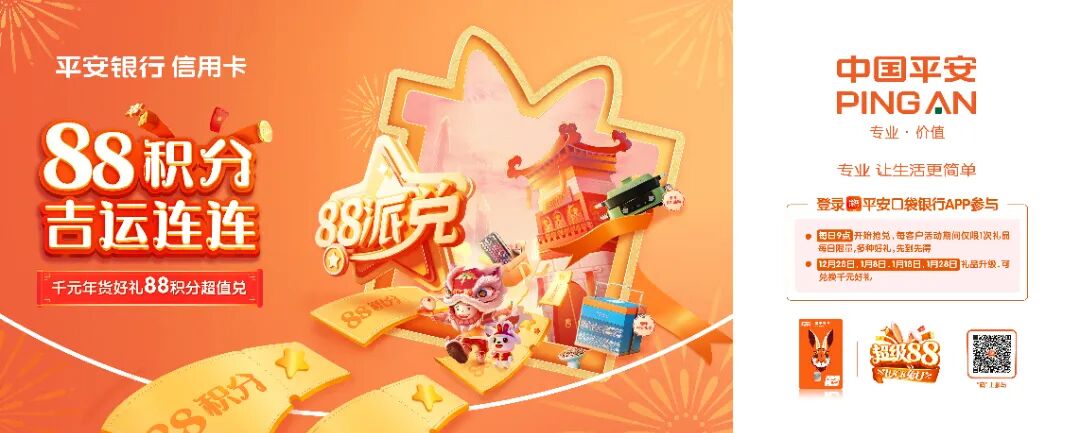 以平安银行信用卡为例,在兔年来临前夕,品牌基于全年的「天天88」消费IP整合优惠加码,推出「超级88」跨年大促IP,以「超级88·LUCK兔U」为主题,结合用户最需要的「好运 (luck)」和传统生肖文化,给到用户一系列省心、省钱、省时福利,强化品牌与「88」超级符号关联性,探索更贴近用户需求、也更深入人心的金融营销方式。