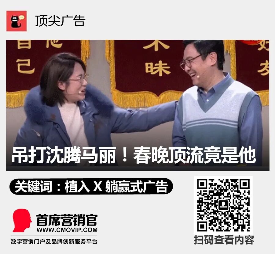 点评:有的品牌是花钱植入,有的品牌用运气证明:最好的赞助,就是不赞助。为此,广告界诞生了一种新式广告——春晚躺赢式广告。