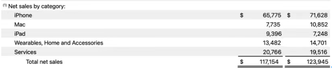 苹果降价背后,跟业绩不佳有关。2月3日凌晨,苹果公司发布了2023财年一季报,第一财季总净销售额为1171.54亿美元,同比下降5%,低于市场预期的1211.04亿美元。值得注意的是,这是苹果自2019财年以来营收首次同比下滑。