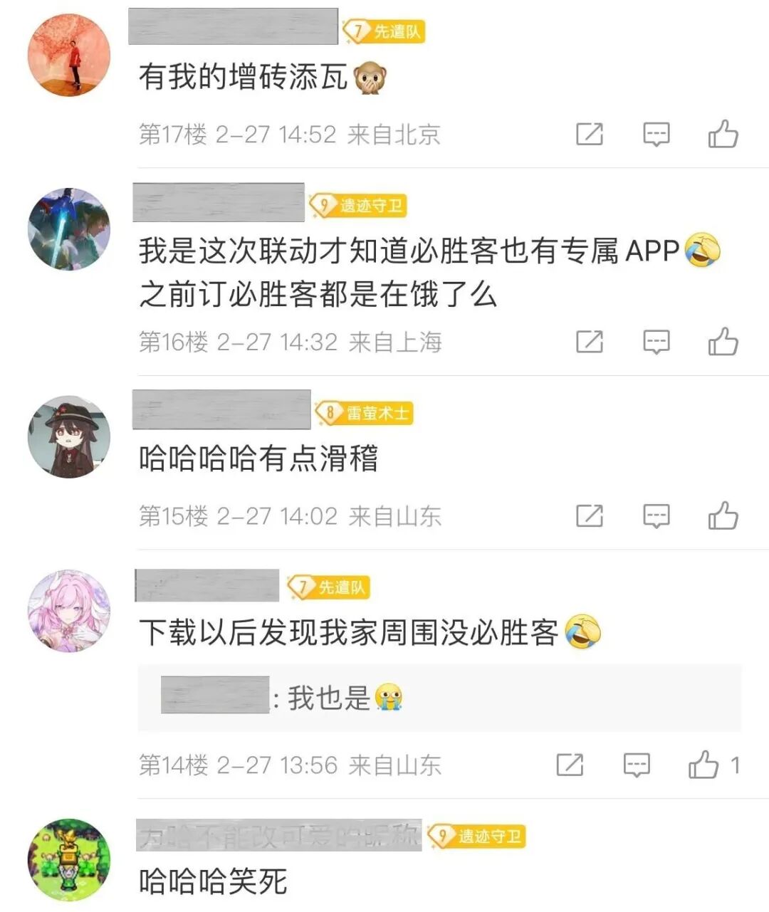 对此,很多网友如实坦白:的确是为了这次联动才下的必胜客APP。