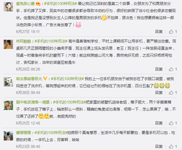 作为一款主打“防摔”的品牌,defense决色要想让消费者尤其是年轻人真正地认可并喜爱品牌,仅凭借将slogan融入广告片中宣传卖点还是太表面,如果能够找到消费者的痛点,并一针见血地戳中消费者,才更能彰显营销的力度。为此,defense决色还在微博发起了互动话题#手机的100种死法#,让网友分享自己的“摔机”故事,可以说是一次直击灵魂的拷问。试问谁没有因为“手滑”而摔坏过手机呢?显然,这一话题很能激起网友的讨论热情,手机各种奇奇怪怪的“死法”简直让人大开眼界。#手机的100种死法#戳中了网友的内心痛点,而defense决色要解决的,就是让手机“幸免于难”。摔不坏的手机是不存在的,但是有了小彩壳的保护,就可以让你的手机想怎么摔就怎么摔,也正应了广告片中的那句话:生活没有假设,除非有所防备。从手机的100种死法,到保护手机的100种方法,这种营销沟通点的转变,绝对是defense决色的一次“诛心”之计,在与消费者的沟通互动中激发情感共鸣,让消费者认识到品牌的功能特点,更激起了购买欲望。这种情感上的沟通,其实也体现在广告片中。再回看广告片,我们会发现,虽然八个场景的故事略显荒诞,但大部分都紧贴我们的日常生活,夫妻、情侣、同学、甲方乙方、父子都是我们熟悉的人际关系。就算童话故事和人机魂穿,也是当下流行的话题。defense决色的广告片不追求高大上,不刻意制造神秘感和晦涩感,通过对我们熟悉的场景故事进行夸张演绎,既能带来新鲜刺激,又可以更轻松地唤起情感共鸣,用品牌的亲和力来拉近与消费者的距离。对于一个新品牌来说,用心的对话,情感的交流,亲切的沟通,才可以更好地融入到消费群体中,提高品牌的知名度和影响力。
