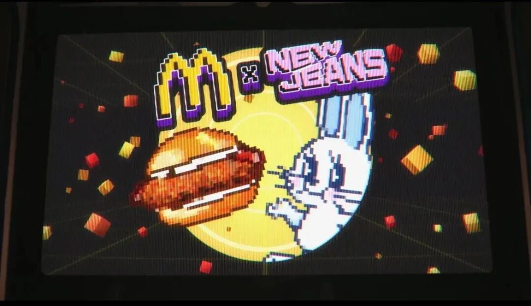 麦当劳和韩国女团NewJeans的联名,从游戏质感的像素风格延展到海报物料、广告影片之中。以趣味新潮的形式,吸引大众的注意。