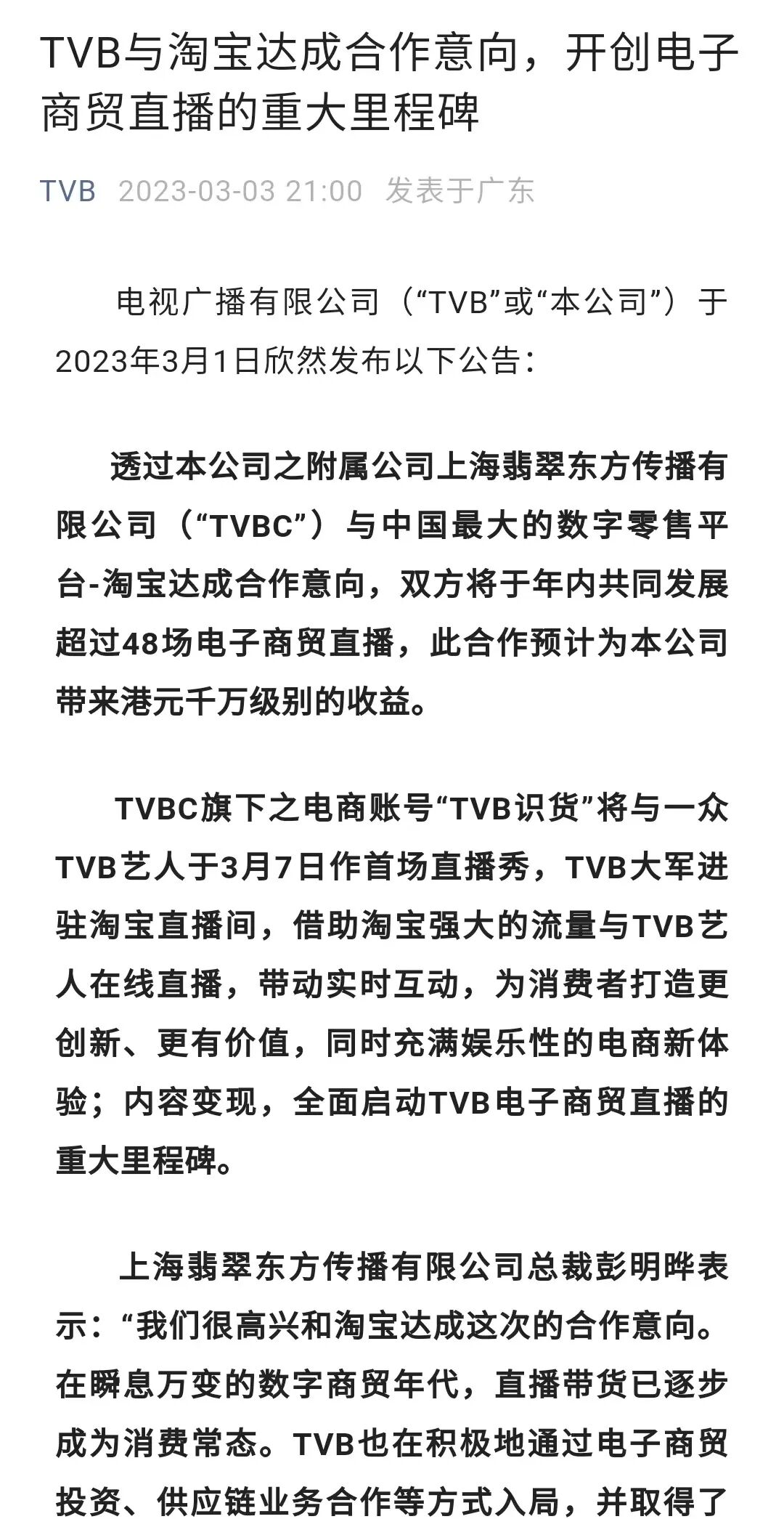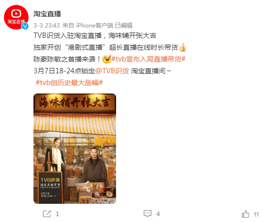 几天前,淘宝直播一张故弄玄虚的预告让许多聪明的网友猜测TVB演员要来淘宝直播。其实,如果单纯是TVB演员入局淘宝直播大可不必这么大阵仗。毕竟先前诸多TVB“老戏骨”直播带货大多悄无声息,扑的一干二净。一天后,谜底揭晓!原来是TVB官方要以“TVB识货”的身份来淘宝直播了。“其实两个人在一起最重要的就是开心。1、2、3,上链接!”“呐!做人呢,最重要就是开心。1、2、3,上链接!”这是我脑海中能想象到的、挥之不去的TVB带货场景。但真能玩出什么花?还要看明天晚上的首秀了!当港剧的辉煌一去不复返,TVB要走新东方走过的路,靠直播带货翻身?01