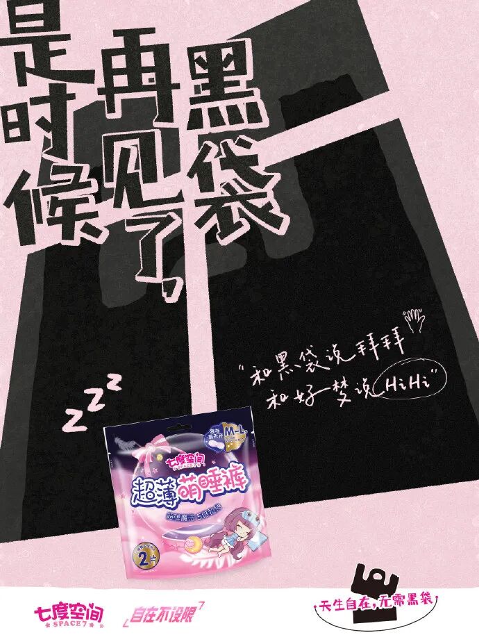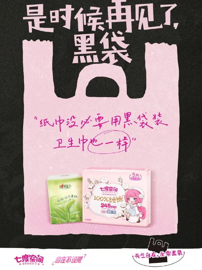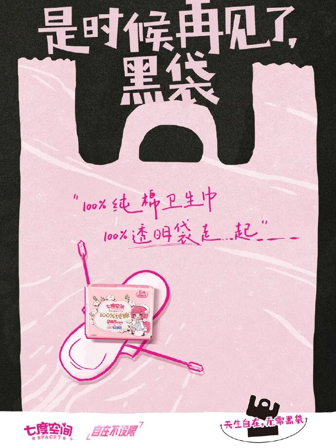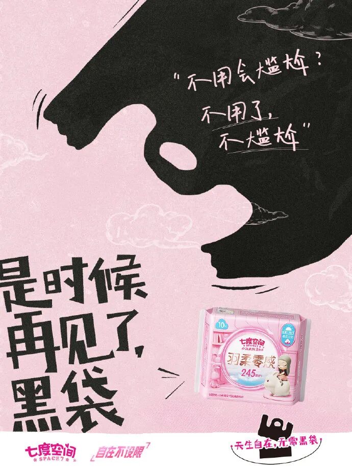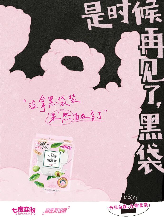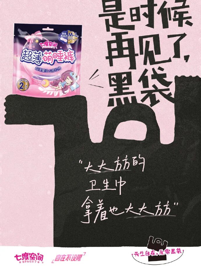 作为一个有温度的品牌,七度空间借势三八节与女性用户一起为卫生巾正名,冲破黑袋的束缚。鼓励大家正视月经这一生理现象,突破心理和行为上的“黑袋”,拒绝月经羞耻。