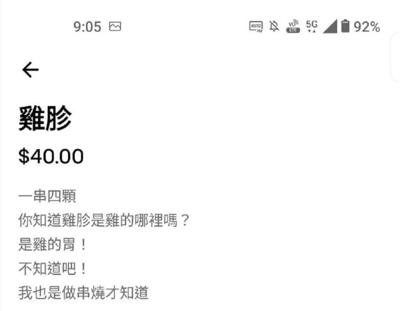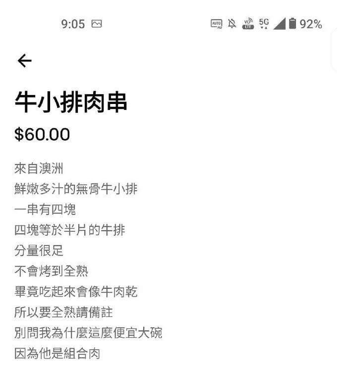 那些反向营销,揭自己“短”的文案反而更能引起消费者注意。还有,我万万没想到,有朝一日《七里香》还能给鸡屁股打广告。最后一句“真是值得一试的好屁股”,怎么还有点羞耻?值得一提的是,对于普通食材,店主从不夸大其词,甚至有点过于实诚了: