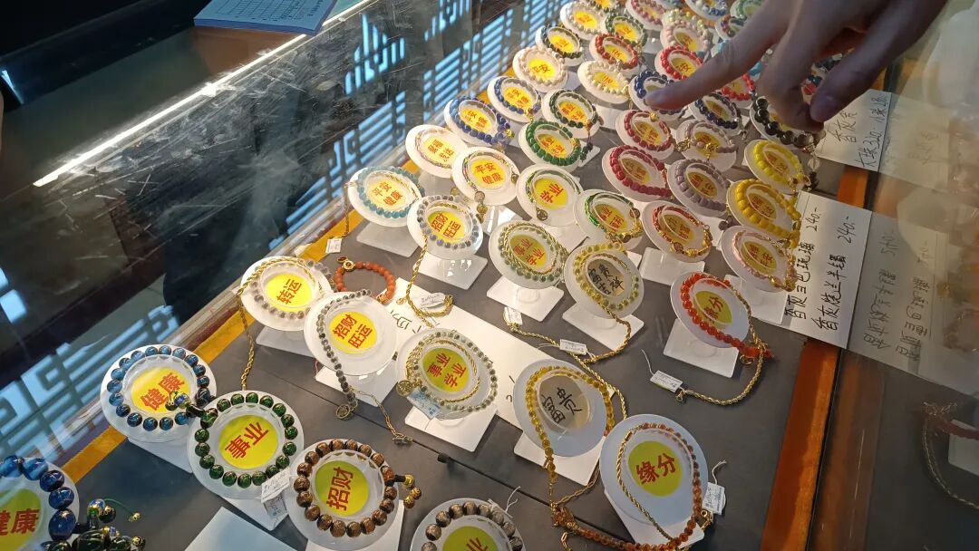 有人求手串是为了祈愿,有的则把手串当作潮流品去追逐,这也催生了周边生意。