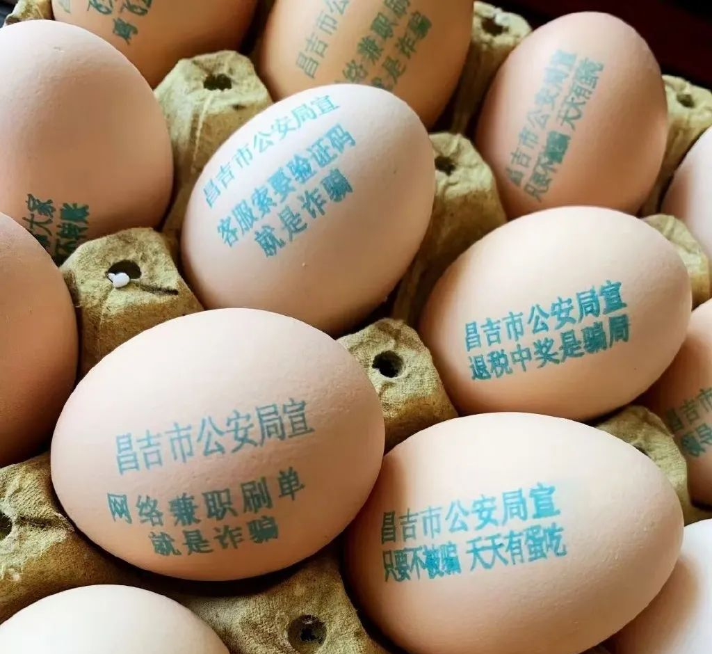 直接反诈标语印在鸡蛋上,并进行免费发放。