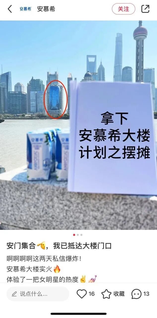 在这篇笔记发布不久之后,很快引来了一大堆网友过去围观。随着事件的发酵,目前这条笔记获得了5.1万点赞,408万以上的曝光,而大量带着“安慕希大楼”的帖子出现在小红书,最终连安慕希官方也被吸引了过来,“是的,那这一次我要夺回属于我的大楼”,一下子获得了7.8万点赞,为这场狂欢又加了一些燃料。那么,当这栋伫立在上海外滩的大厦在遇上了安慕希后,他们之间会碰撞出怎样的火花?又带出了一个十年大单品怎样的成长密码呢?