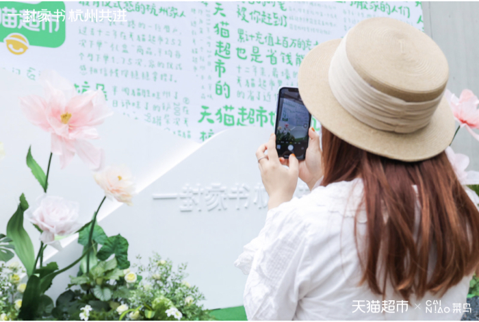 除此之外,活动当天在西湖边、曙光新村、大马弄、钱江新城等区域闪现了这一封给杭州的12年家书,将天猫超市和杭城更加紧密的连接,将活动推向了高潮。