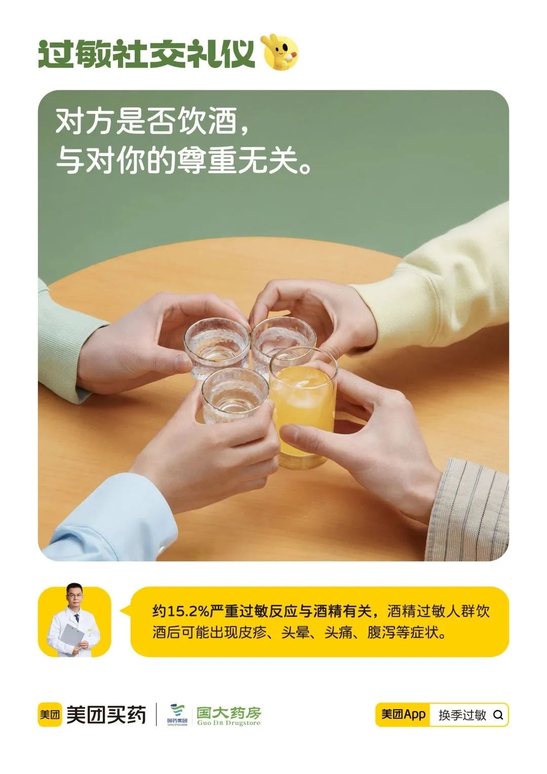 在这个疫情之后难得相聚出游的春天,美团买药借「社交」的话题,将过敏人和身边有过敏人的人,都引入到传播中,把科普病症这件事变得有意思,可传播起来。