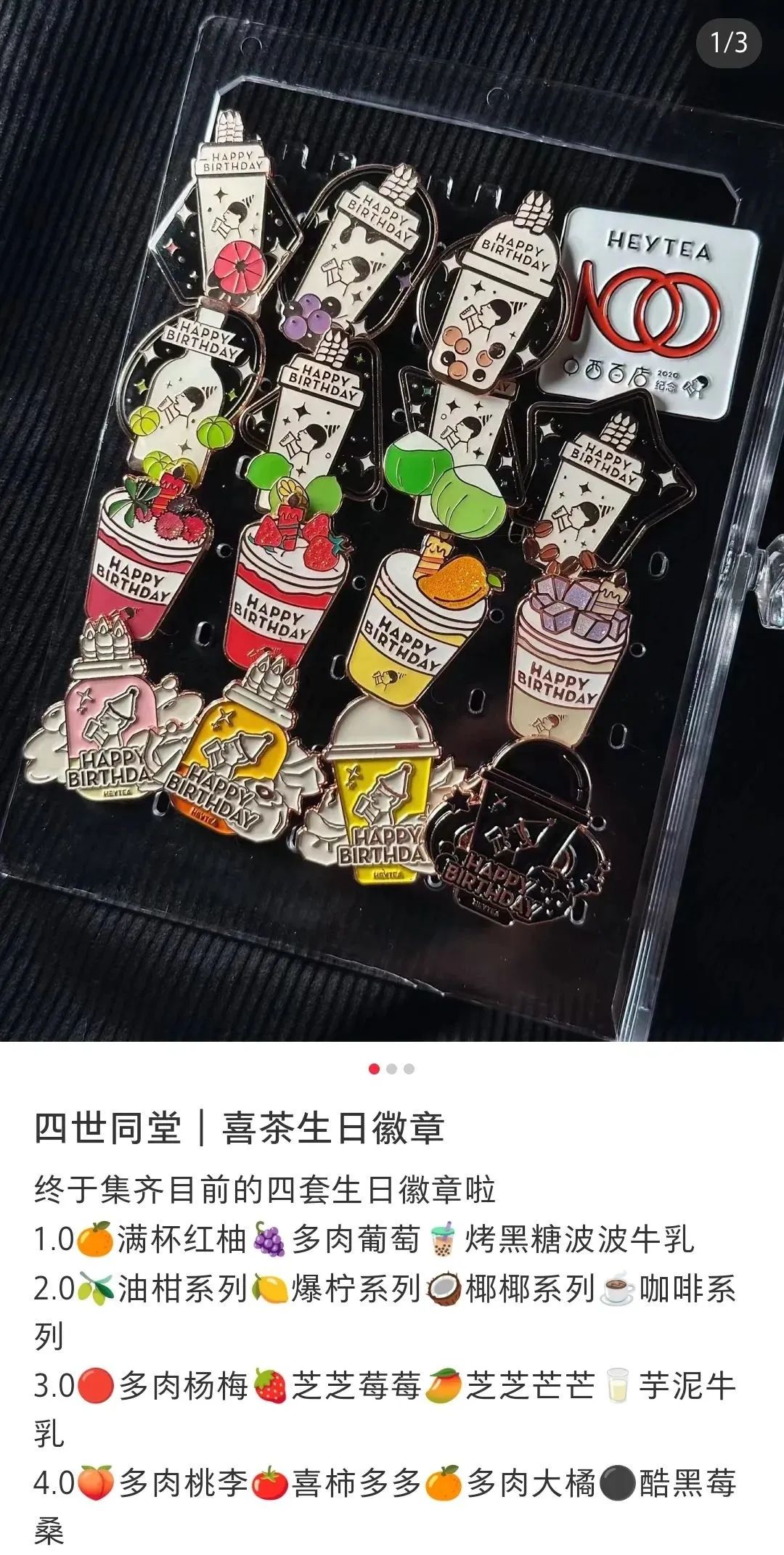 事实上,随着时间推移,大众对新品的热情逐渐下降,为了博取关注,新茶饮正在更多地把花样放在新品的附加品上,也就是各式各类有收藏价值的周边。买椟还珠式消费正在新茶饮赛道流行,喜茶正是出周边的个中好手。而冰箱贴以外,类似引发关注的还有:生日徽章系列。喜茶的生日免费领徽章活动在小红书上广受好评,而品牌跟进得也很快,目前已经出了四版,都是以招牌产品为原型设计的,非常可爱。杯套\托系列。从21年五一活动的小镜子,到22年六一联名pidan的猫爪,再到和3ce联名的游泳圈,喜茶前后三款杯套都成为了吸引关注、带动消费的利器,并且后续被网友各种二创,产生了广泛而持续的ugc传播效果。这些周边都比较有质感,让人舍不得丢掉,也保证了它们在人们的日常生活场景中留存。喜茶有设计感、潮流感的品牌形象也少不了凭借着这些细节的周边产品,在人们心中不断地凝实与保持。不过值得注意的是,理想很美好,但现实却是:随着大众的审美疲劳,人们对周边的要求越来越高,既要求有新奇的创意,又要求工艺出品的稳定,与此同时,扩张模式下的门店服务、物料库存也直接影响到活动的口碑乃至于整体的品牌印象。