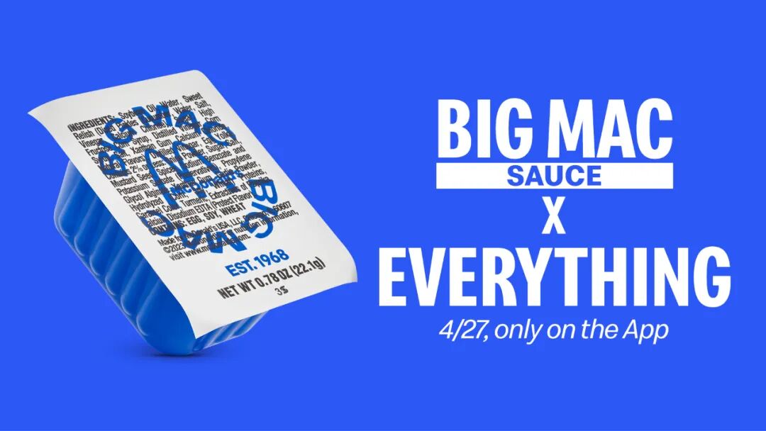 这是官方推出的“巨无霸酱”,实现一堡一酱。新包装设计没有采用经典的红黄配色,而是采用了蓝色为主设计,整体呈复古调。