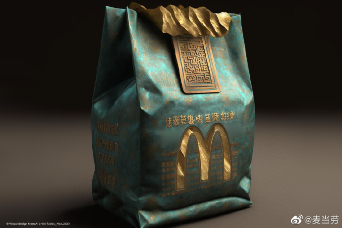 这些设计将麦当劳产品打造成出土文物的形象,可以说是蹭上了一波AI的热度。(左右滑动查看更多)