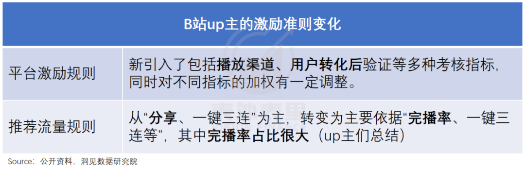 B站则是短视频和长视频内容,在同一个流量池竞技,且多次调整UP主相关的激励机制,有意无意偏向于短视频: