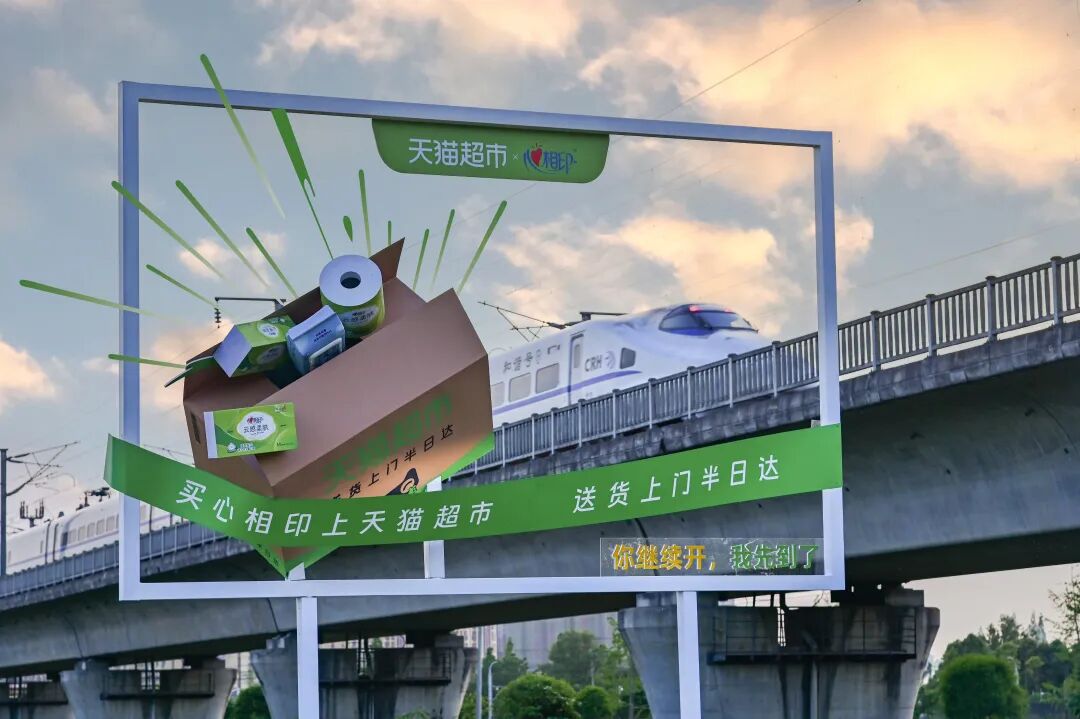 天猫超市此次依靠“与飞机高铁同框”的广告装置,高效传递和植入品牌核心信息的成功案例,可谓是再次给甲方乙方提了个醒:小创意,也能四两拨千斤。