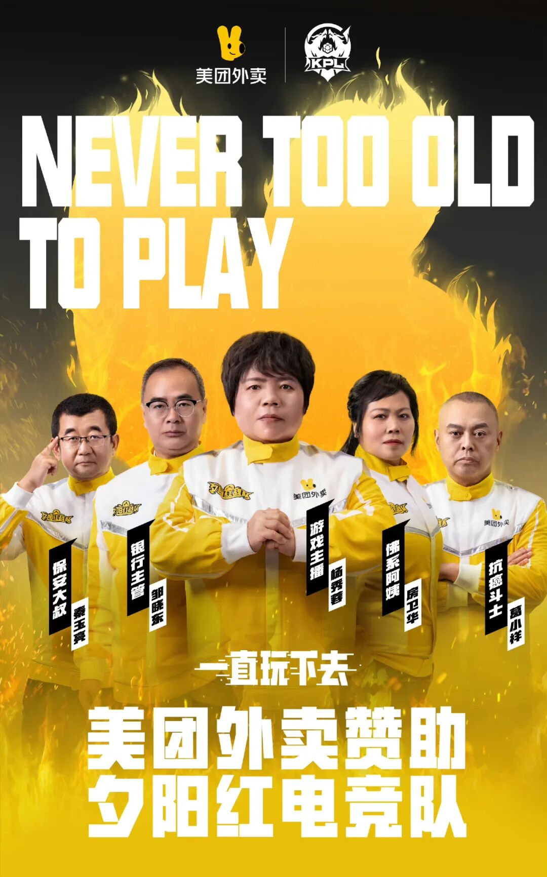 然而我们却观察到,美团外卖在成为KPL 2023年年度合作伙伴之外,还有一个反向操作──将赞助对准一支几乎没有胜算的夕阳红电竞队,一个平均年龄55岁的老年电竞战队。
