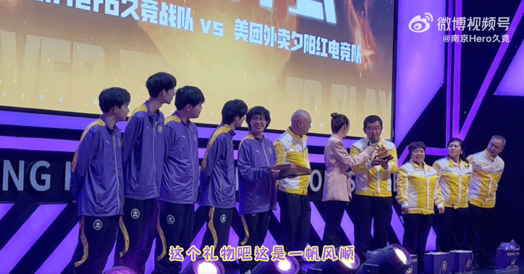 另外,在赛后,叔叔阿姨还给“对手”南京Hero久竞送上礼物与祝福,将氛围推向高潮。