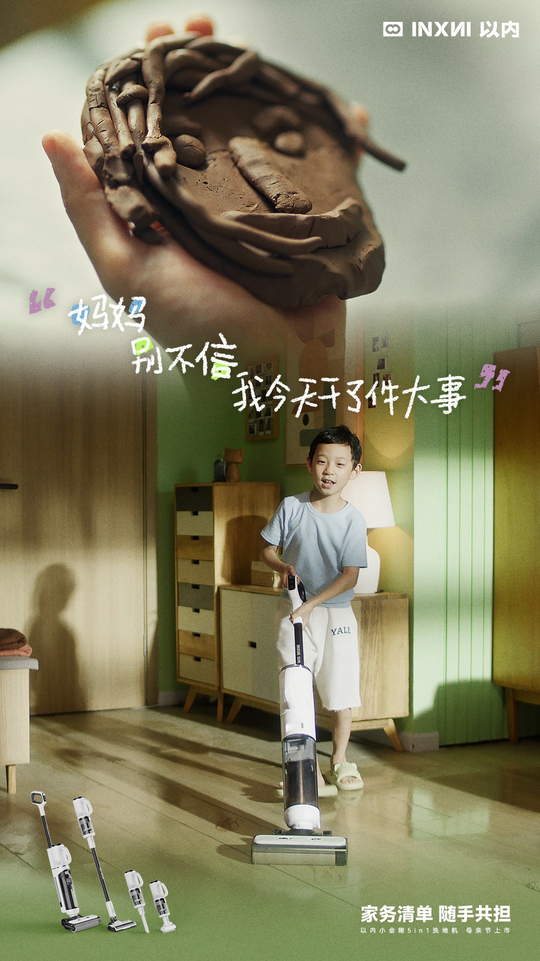 我们的新品,不是为母亲身上的家务重担减负,而是为整个家庭的家务重担减负。刚好,我们的新品小金刚,一台包揽洗地机、吸尘器、除螨仪、随手吸、高处吸五大功能,5in1的多功能设计,是一款能够为整个家庭的家务重担减负的产品。