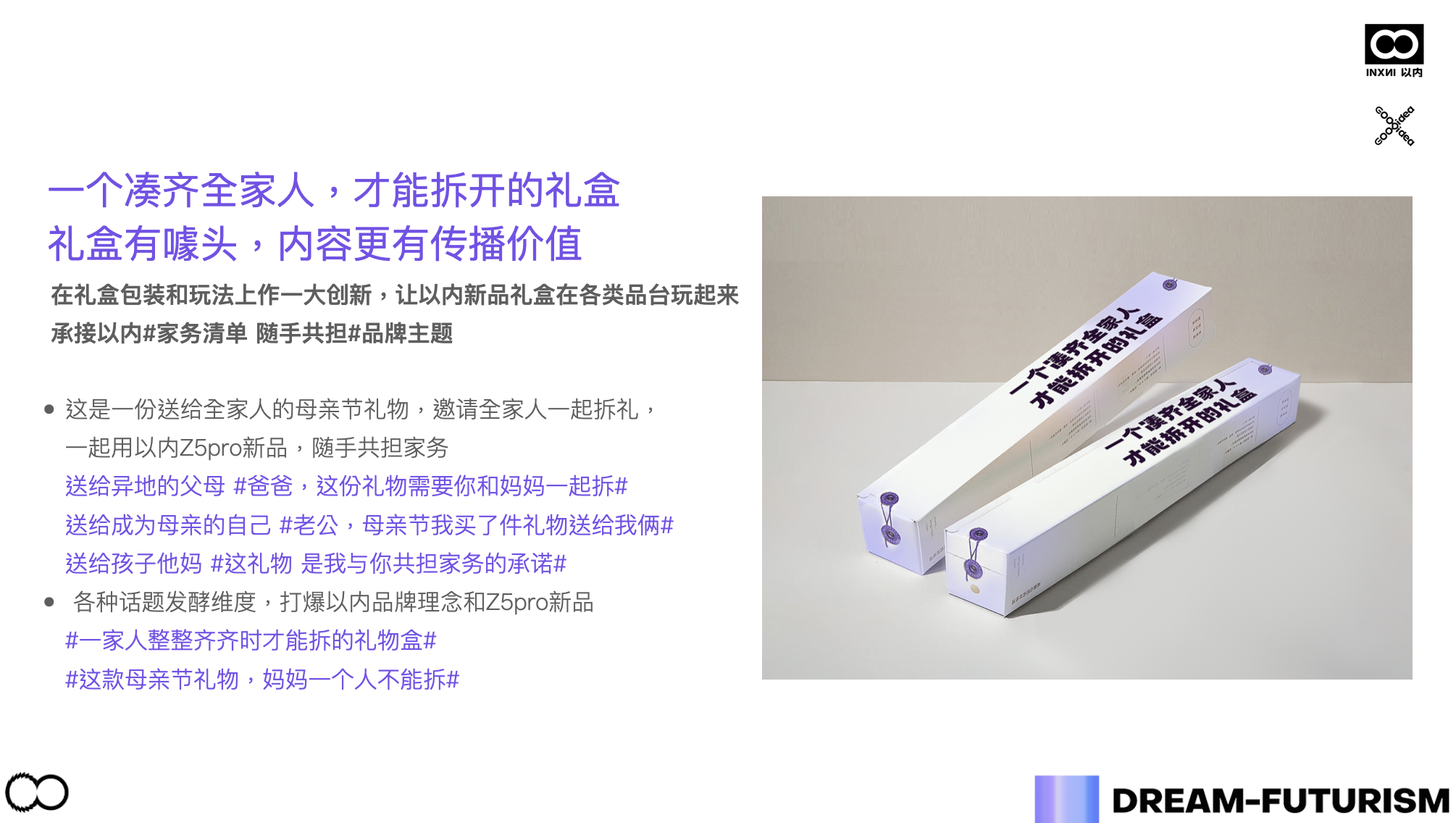 所以我们提案时,将以内新品的礼盒打造成“一个凑齐全家人,才能拆开的礼盒”。