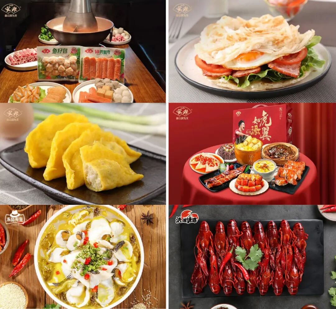 安井食品早在2018年就已经着手布局预制菜品类。2022年二季度成立“安井小厨”事业部,聚焦B端调理菜肴类产品;以轻资产运作模式整合上游中小食材厂家,为全资子公司“冻品先生”贴牌生产面向消费者的菜品;通过收购新宏业食品有限公司、湖北新柳伍食品集团有限公司,快速布局上游原料淡水鱼糜产业及速冻调味小龙虾菜肴制品。