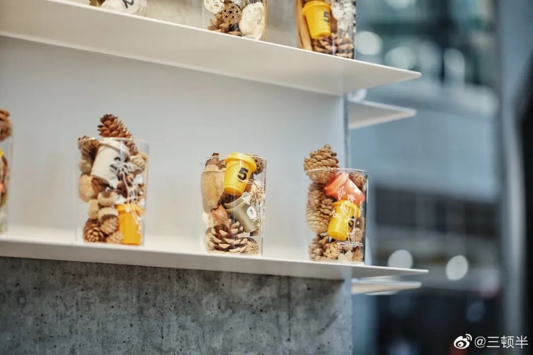 与其他咖啡品牌使用传统无纺布和塑料袋不同,三顿半将产品包装设计成了迷你独立杯装,同时杯身标有数字预示着咖啡的浓苦度,这让三顿半不仅形成了独有的专属造型符号,还促使用户主动拍照分享和传播。此外,不少消费者还将包装盒用来DIY,给孩子当玩具、给多肉植物当花盆、给钥匙做钥匙链、给盲盒当做陪衬等等,玩法多样;除了用包装盒DIY,在口味上也可以自由DIY,比如在3号咖啡中加入苏打水或者零度可口可乐,口味就变成了氮气冷萃……一方面包装给消费者带来了深刻记忆点,另一方面消费者亲手DIY的方式产生的自豪感和满足感,让他们更加愿意将使用过程分享到社交平台中,自发性传播为品牌带来了更大的声量影响。