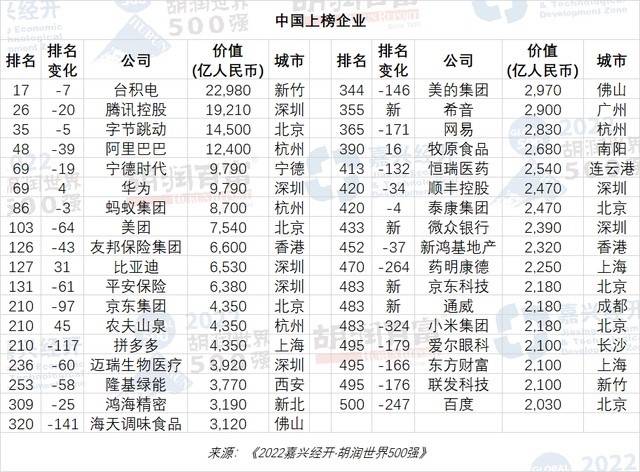 去年12月,胡润研究院发布了《2022胡润世界500强》,按照市值或估值为世界范围内的企业(非国有)进行排名。这个榜单最为外界关注的一个变化就是,抖音的运营主体字节跳动排名首次超越阿里,成为了中国上榜企业的第三名。排在字节跳动前面的,一个是腾讯,另一个是台积电。