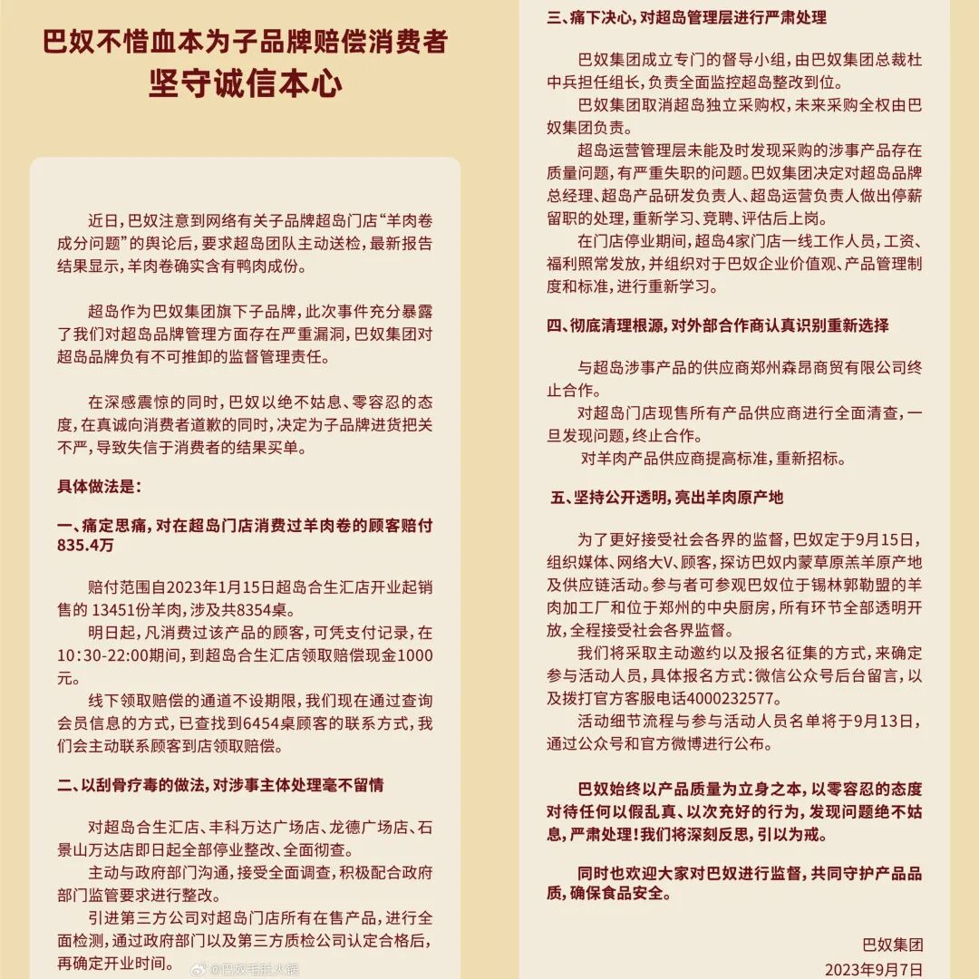 面对送检的羊肉卷确实含有鸭肉成分的事实真相,巴奴的做法更是绝,放在整个餐饮界都是相当炸裂的。