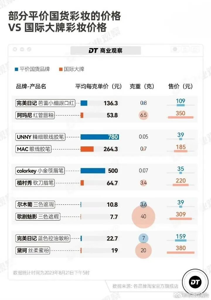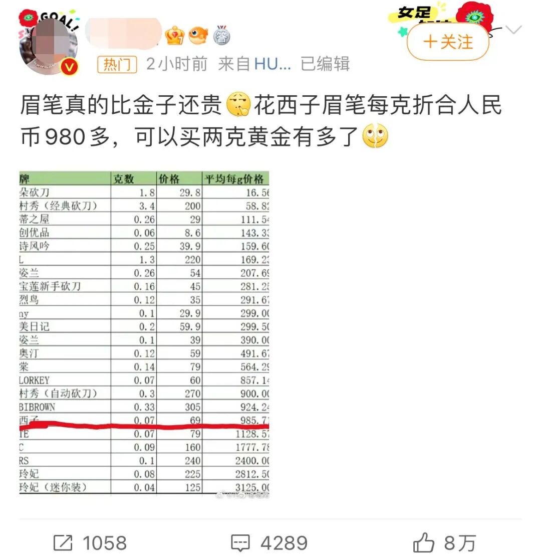 最招黑的一点,是花西子真的贵。有人算了笔账,说花西子眉笔每克折合人民币980多,可以买2克黄金了。