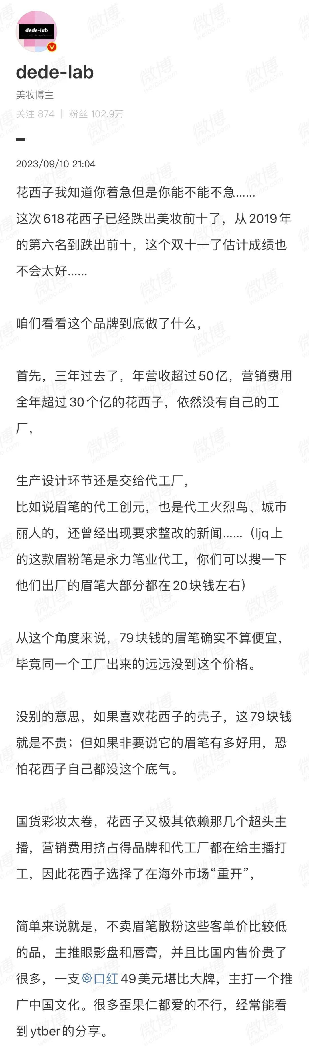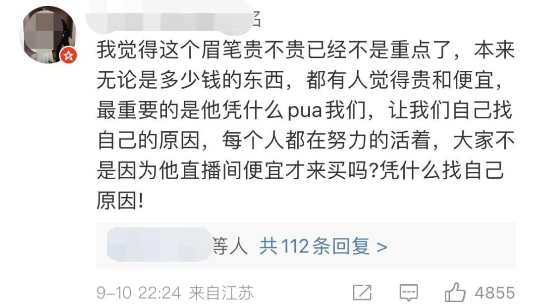 在最近的一场带货直播中,有网友留言:“花西子的眉笔79元很贵”。
