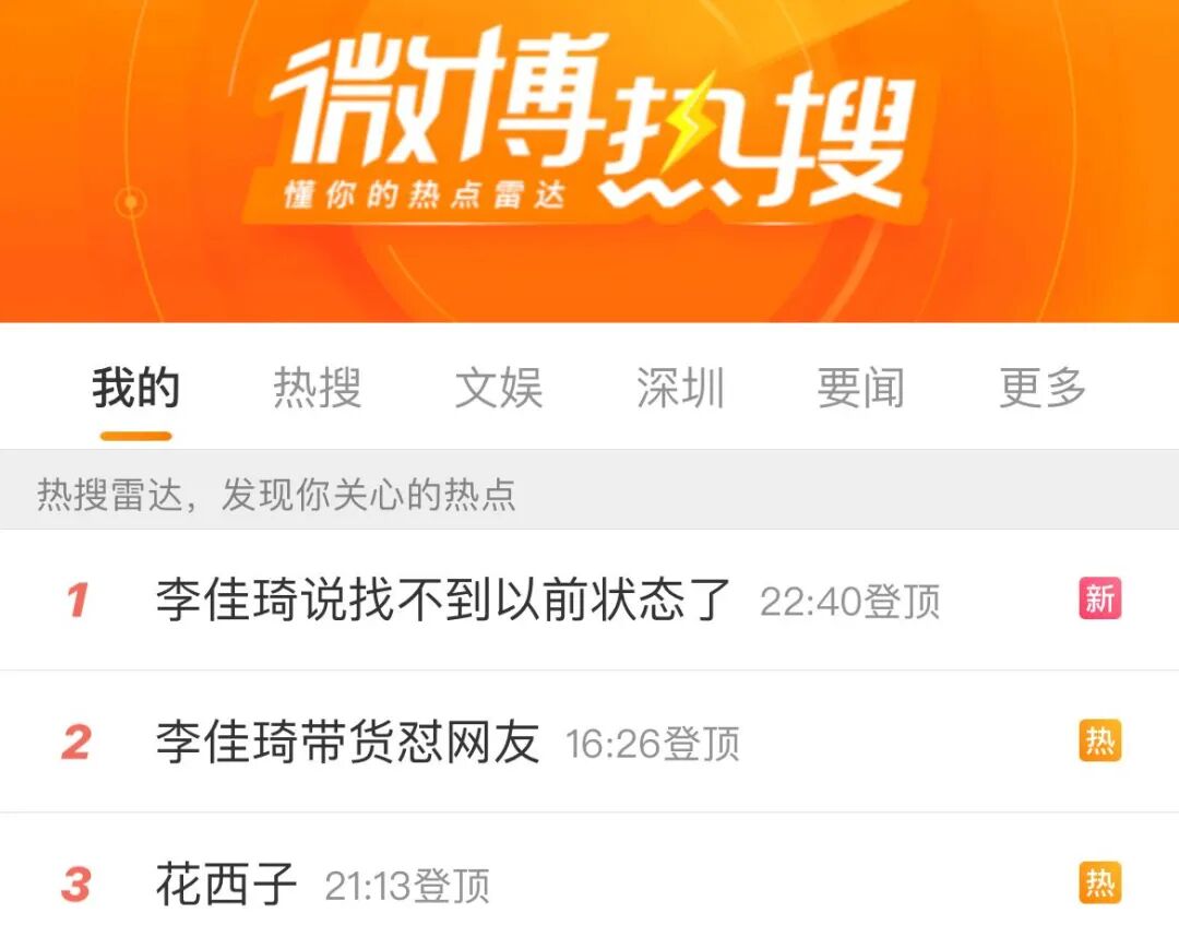 很快第一个动作来了,#李佳琦说找不到以前状态了#当晚登顶热搜。