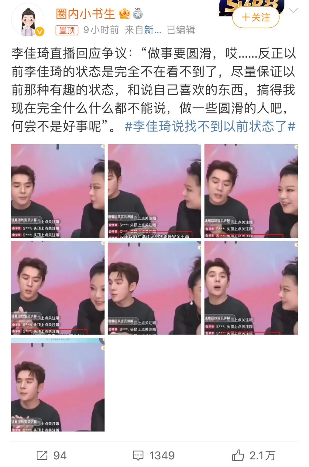 内容是李佳琦直播回应争议:以前的李佳琦的状态是完全看不到了……做事还是要圆滑……
