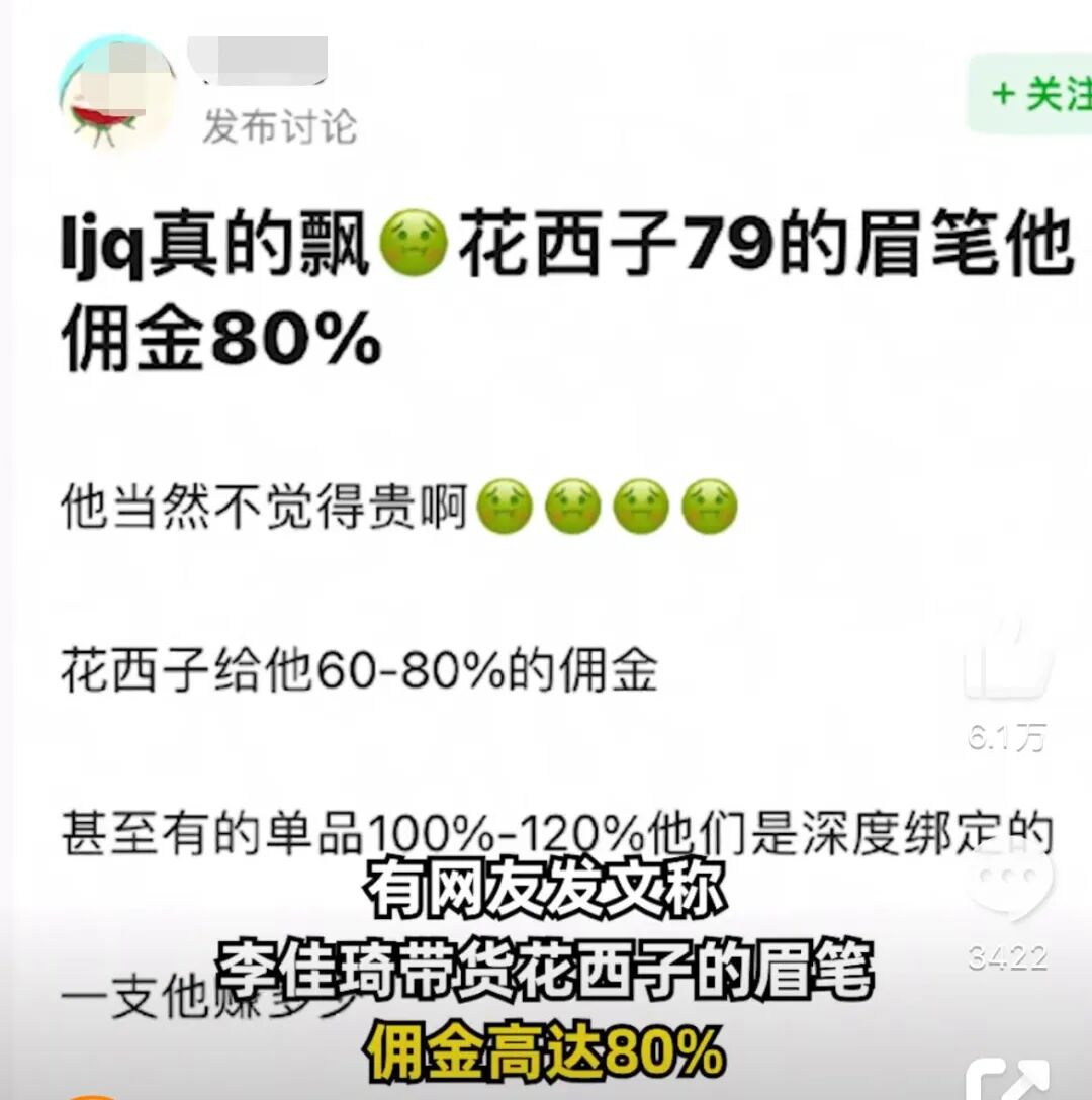 还有网友爆料,李佳琦带货花西子的眉笔,佣金高达80%。