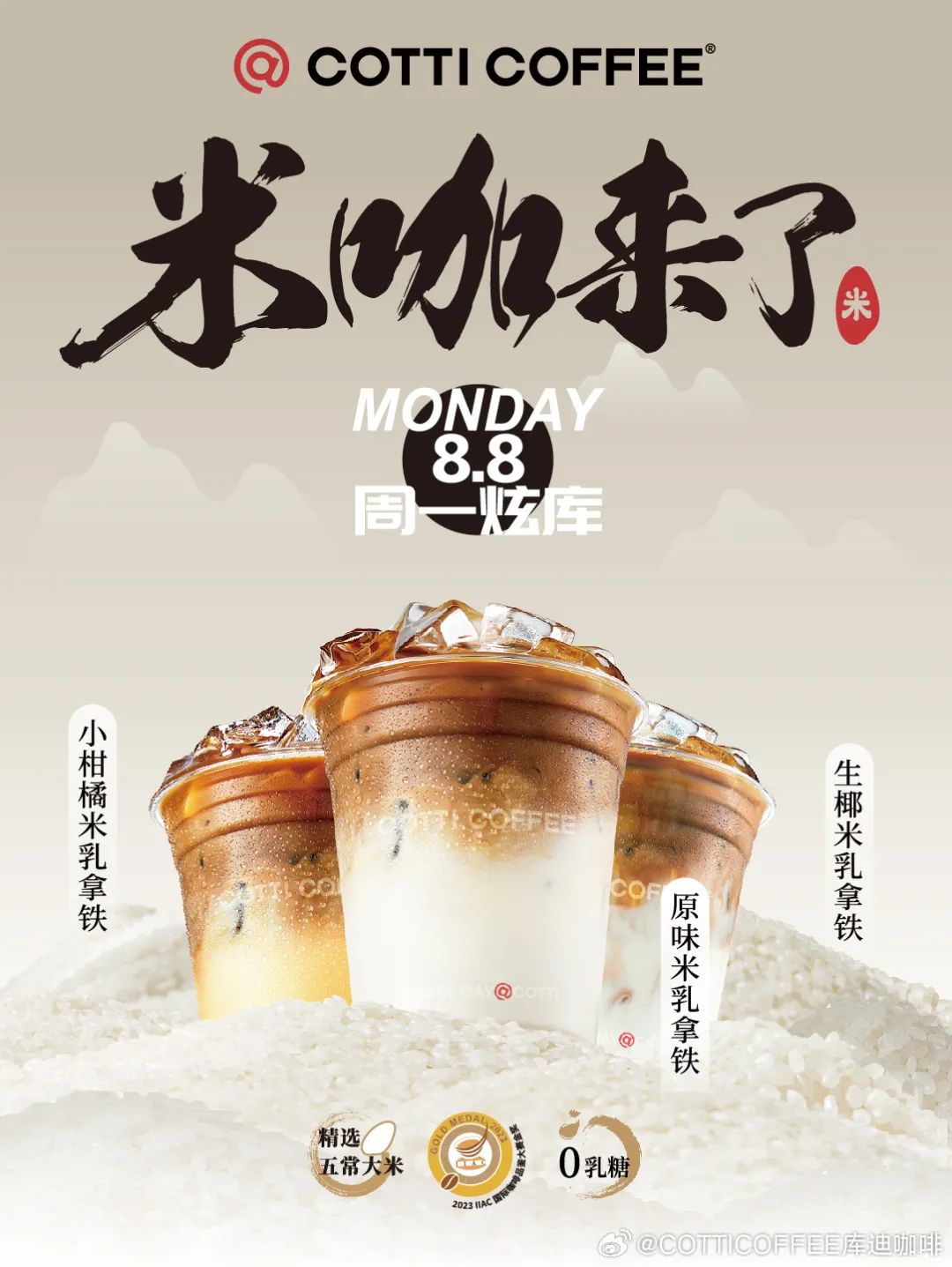 记得小时候看《大时代》《创世纪》这些商战剧,都是尔虞我诈、勾心斗角,不到你死我活的程度,根本没法大结局。长大了才知道,现实中很难见到这么惊心动魄的商战,“前CEO带人回公司抢公章”这样的戏码,就足以让网友兴奋好几天。而大部分的商战,都是采用最朴素的方式,隔空对战,互相内涵,像小学生吵架一样幼稚。上周瑞幸刚抱上茅台的豪门大腿,以“酱香拿铁”刷屏社交平台,一天卖了1个亿。这周库迪就找来了产自我们黑土地的东北大米,推出了首款“米乳拿铁”,看起来要和瑞幸比个高低的意思。
