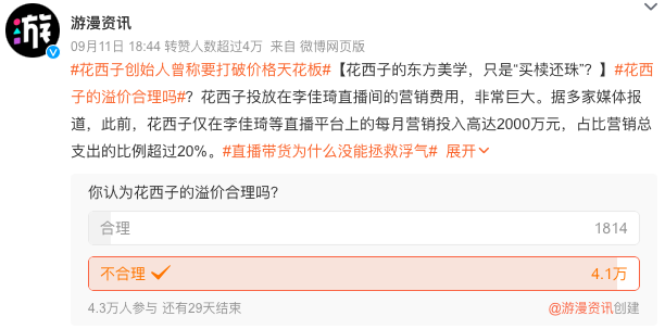 当花西子被曝给李佳琦的佣金能达到60%到80%时,品牌客服没有第一时间辟谣,而是含糊了过去:“此事已经记录,会有专门的部门进行调查,针对网上流传的80%佣金问题,暂不清楚。”