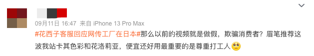 哪怕官方客服后来出来回应这些只是短暂的过程:“品牌随着国内美妆研发及产业链的综合实力的持续上升,2020年已经停止与该研究所和相关工厂的所有合作,目前花西子的研发中心及生产工厂100%都在国内,我们是100%的中国品牌”,依然没多少消费者对它回升好感。