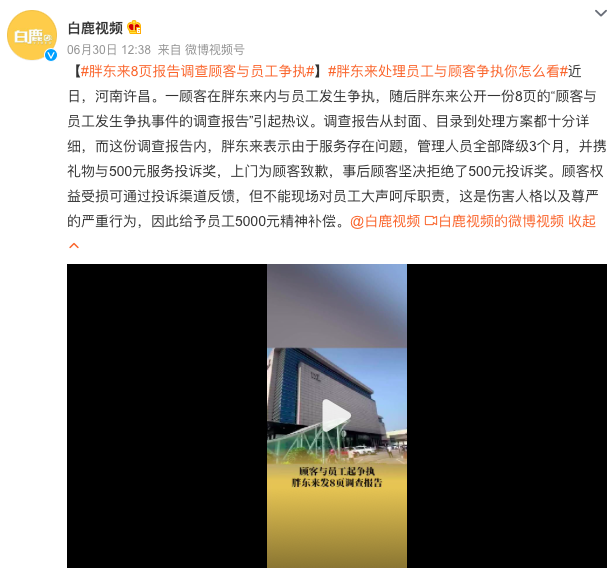 直接写了8页的调查报告,从文字到监控一样不少,从原因到过程到处理方案面面俱到,又维护了消费者的权益,又表现了对员工的关怀。