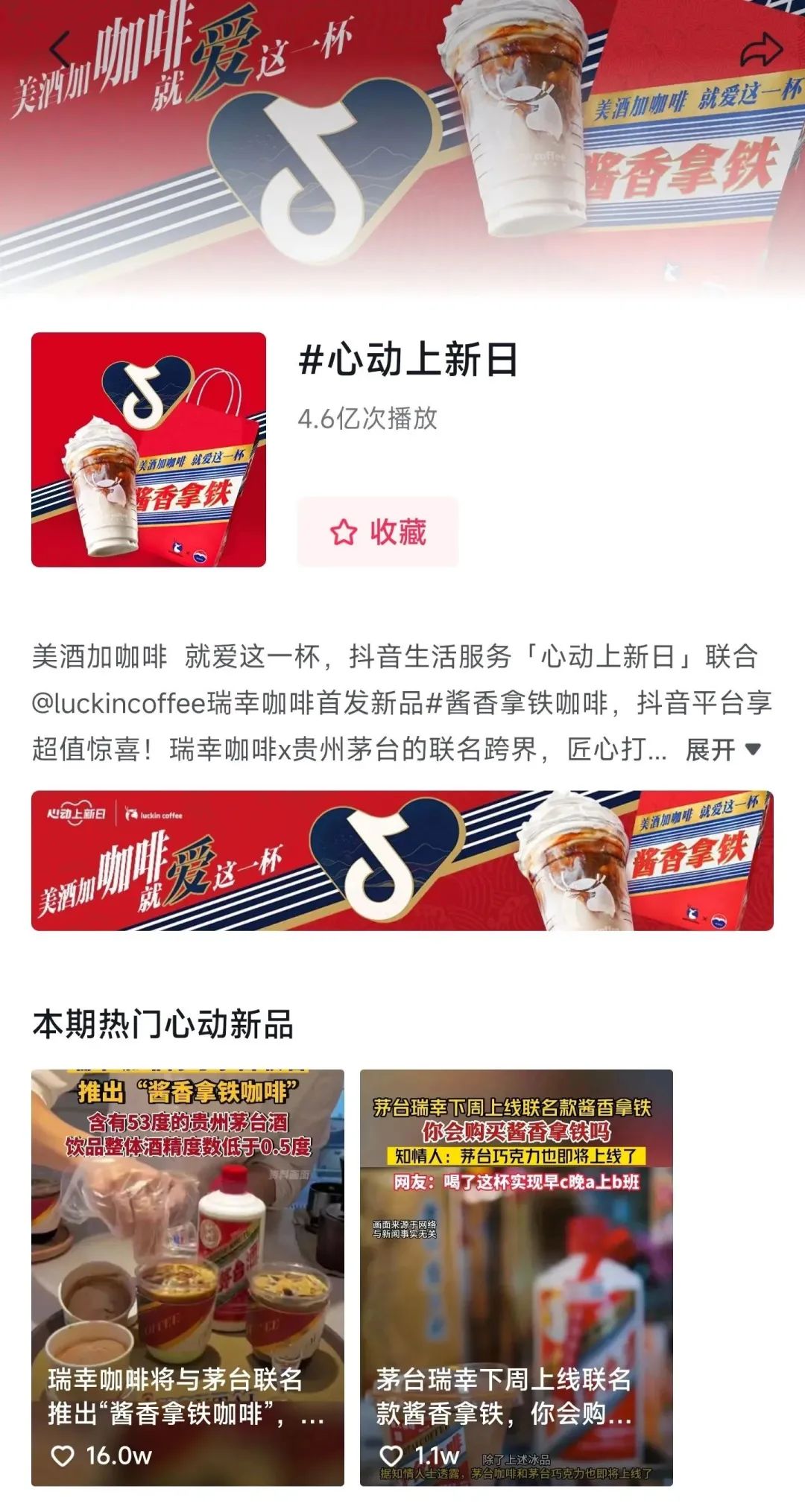 在分析酱香拿铁的成功时,很多人都只关注品牌层面的强强联合,以及瑞幸和茅台之间的得失,却忽略了现象级爆款的诞生,往往伴随着市场需求和媒介环境的重要因素。而酱香拿铁的“现象级”传播,某种程度上也得益于选对了内容舆论阵地,以及抖音兼具品牌传播和销售转化的平台能力。
