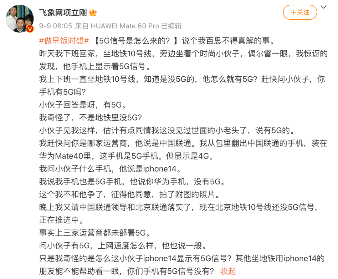 苹果VS华为这场民间自发的“商战”,在发布会预热期间就直接进入白热化阶段。发布会前,苹果抖音官方账号发布预热视频,评论区却被“遥遥领先”全面占据。通篇没提华为,但每句话都是华为的影子,高手果然在民间。发布会开始后,直播间又被“遥遥领先”刷屏,一时分不清这到底是谁家的主场。评论区也很欢乐,但是u1s1,新疆阿克苏真嘟不错!事情是这样的:9月9日,国内知名通讯行业专家项立刚发文对iPhone的5G信号表示质疑。他说有一次在乘坐北京地铁10号线的时,发现旁边的一位乘客使用的iPhone14竟然显示5G信号,但北京地铁10号线是没有部署5G网络的,那么iPhone就有可能显示了假的5G信号。这本来是一件看上去非常严肃的科技探讨,结果到了网友嘴里画风立刻转变,看来局座「战忽局」的影响力不减当年啊。反正圈仔的iPhone 13Pro还能再战3年(如果电池允许的话)。回过头再看这张发布会预热海报,只能说,看之前:好奇心上头;看之后:购买欲下头 ![]()