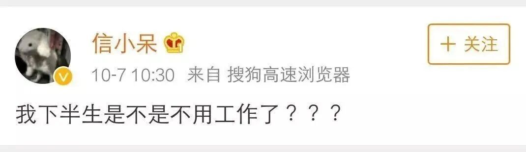 网友@信小呆 成为支付宝锦鲤后的第一条微博