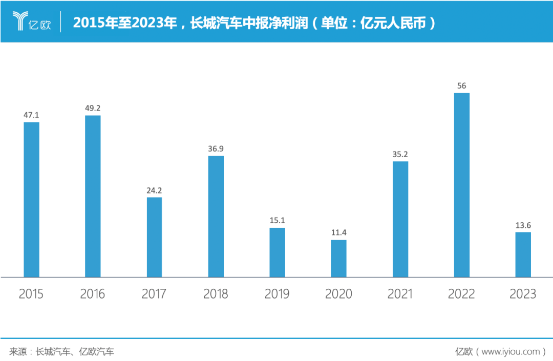 从长城汽车2021年和2022年财报来看,这次改革曾经成效卓著。虽然有疫情和供应链等多重不利因素的影响,长城汽车的净利润却从2020年的53.6亿元增至2022年的82.6亿元,达到近六年来最高。
