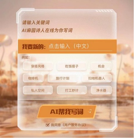 当用户打开H5后,根据提示输入想要“换新的东西”,AI麻园诗人就能在线给你写词、并进行现场演唱。