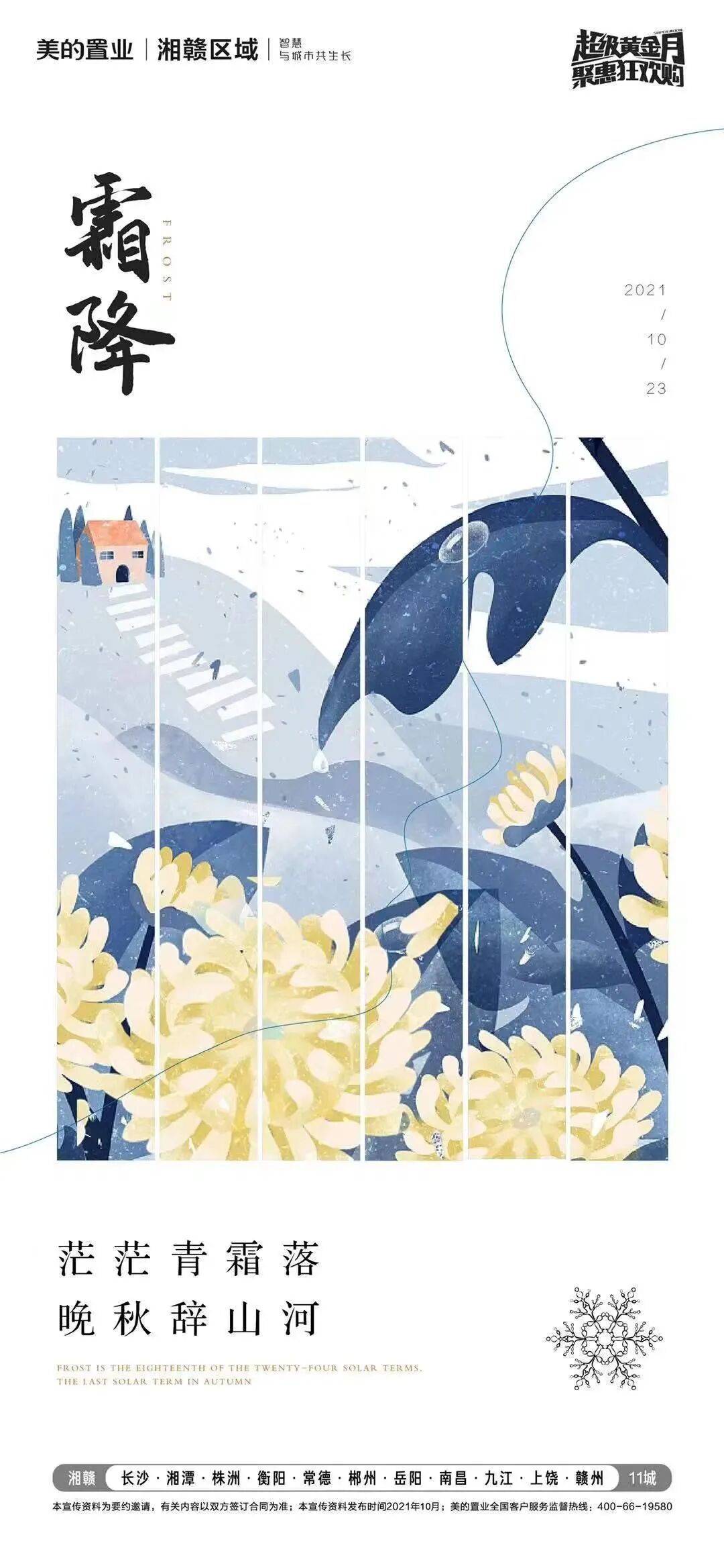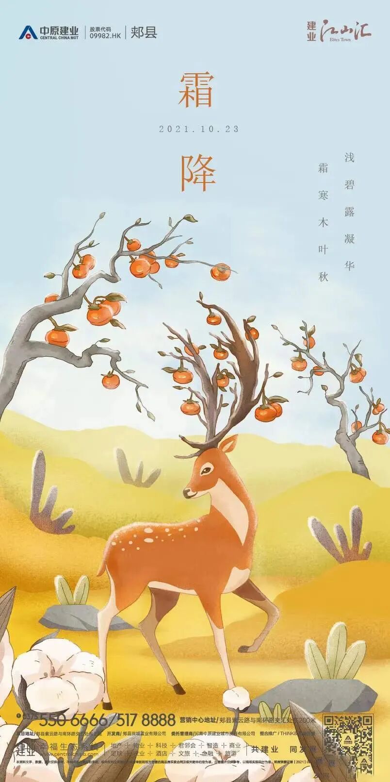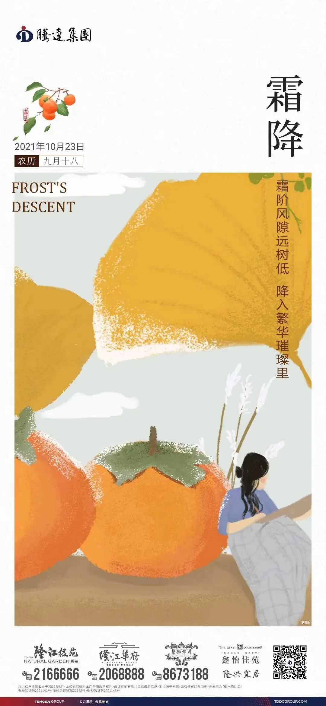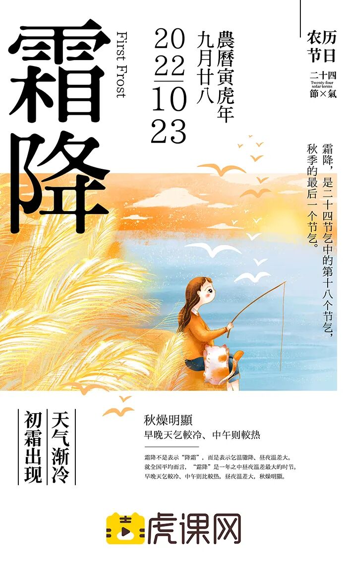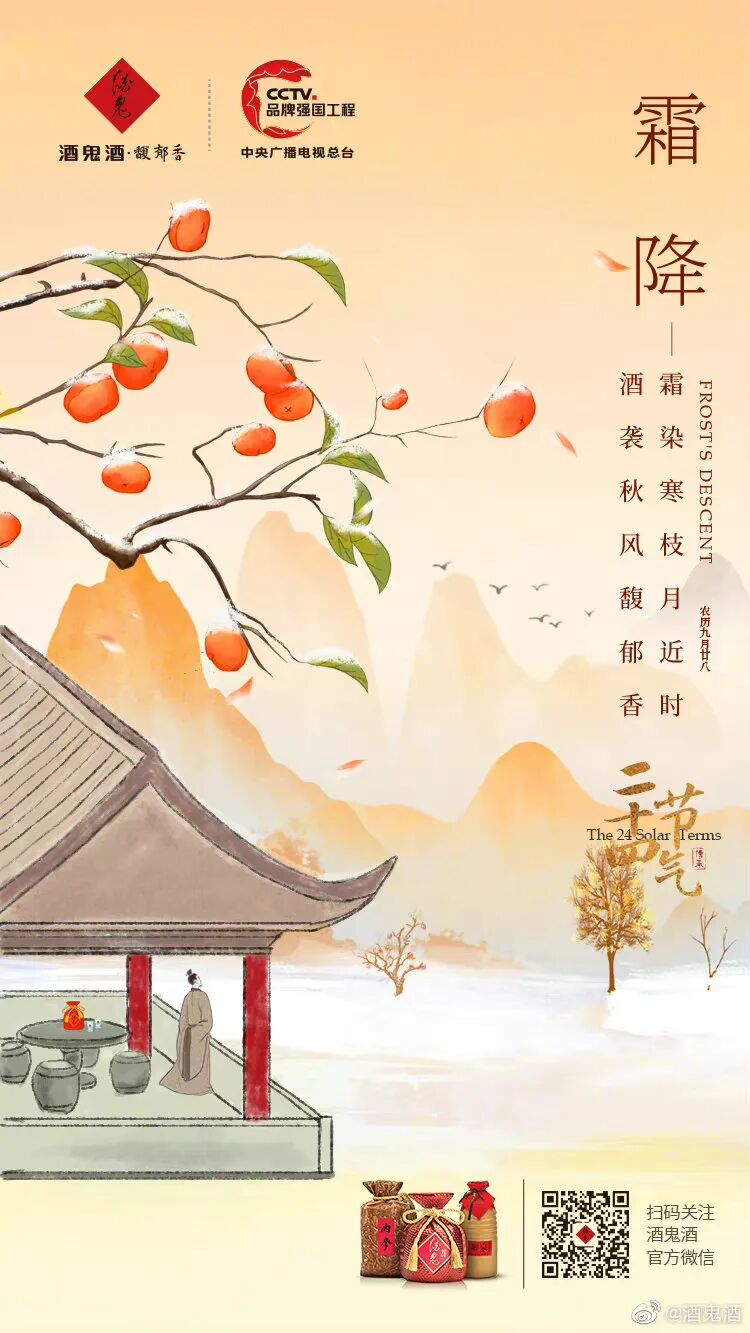 霜降是“二十四节气”中的第18个节气,秋季的最后一个节气,宜赏金菊,享红柿,登高远眺……
