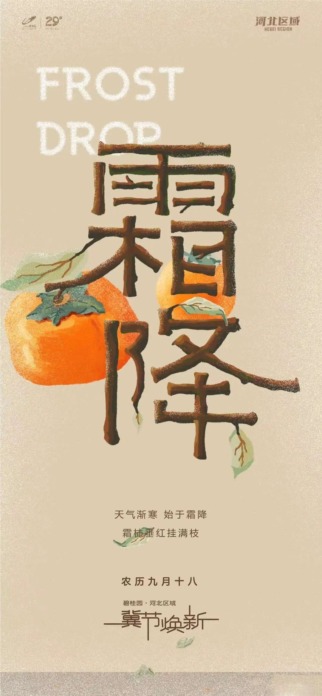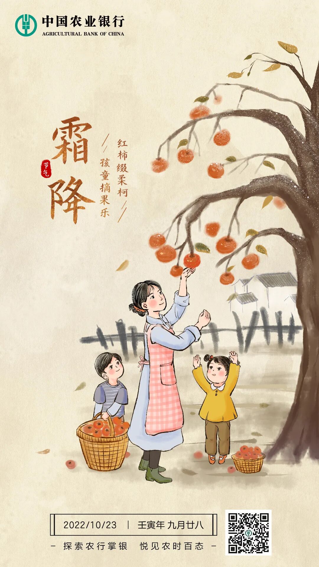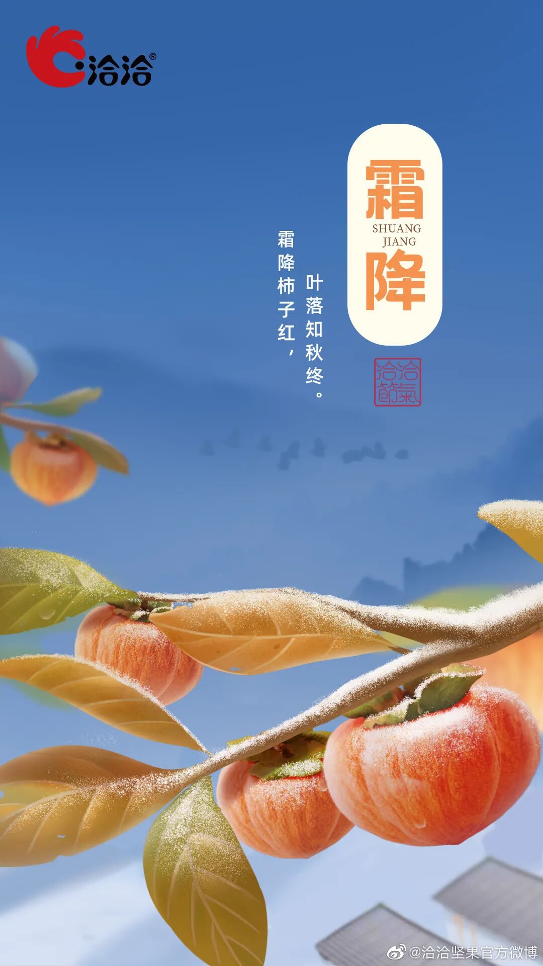 霜降,二十四节气中的第十八个节气,适宜赏菊、登高、进补。年年秋色最深处,霜染柿红,果实累累。