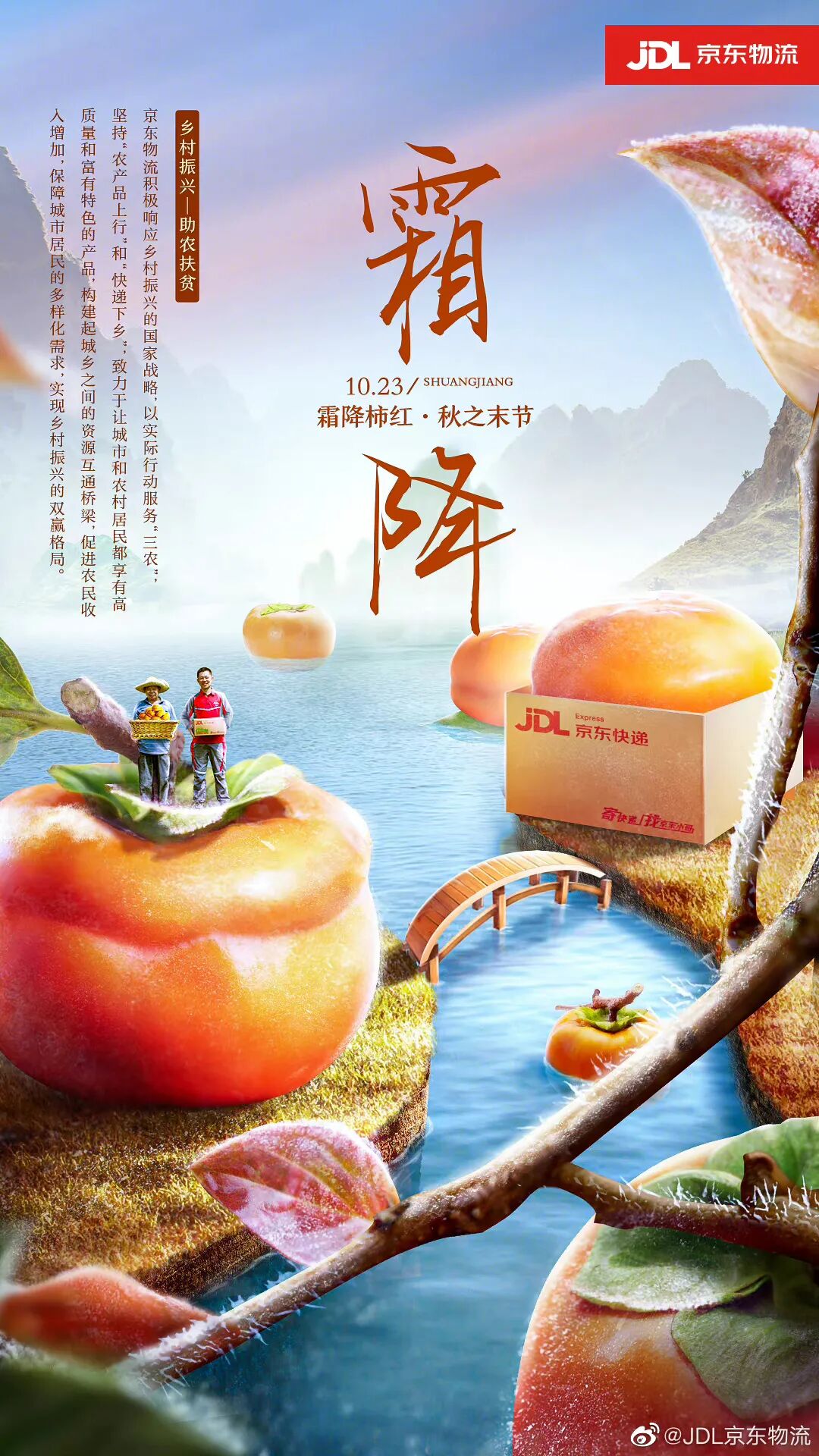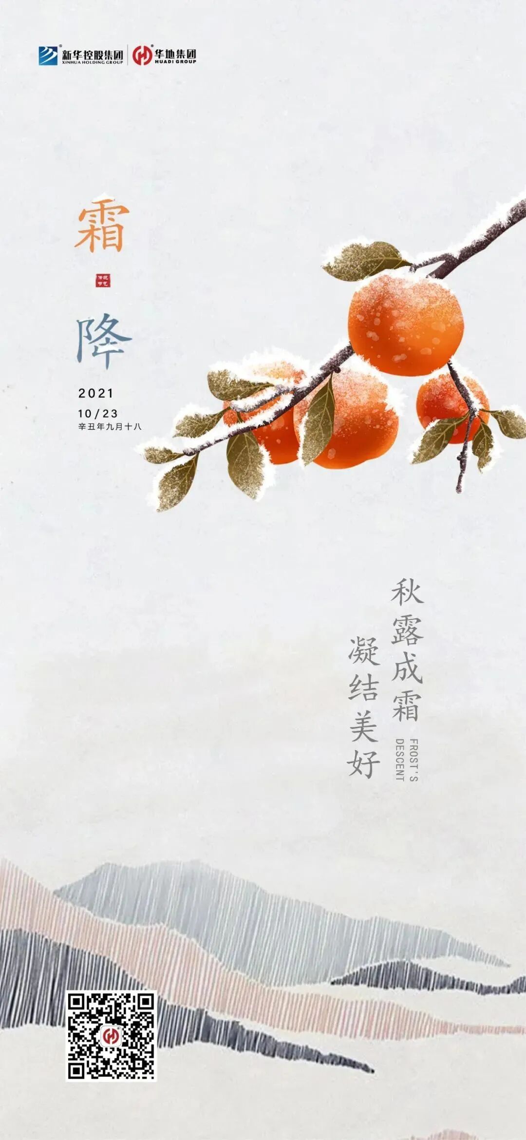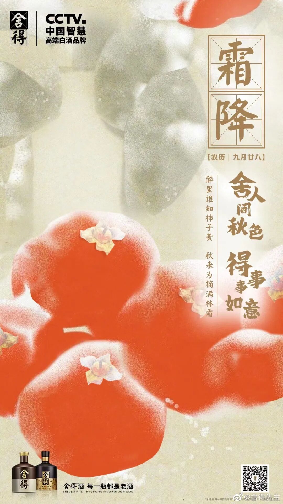 霜降,二十四节气中的第十八个节气,适宜赏菊、登高、进补。年年秋色最深处,霜染柿红,果实累累。