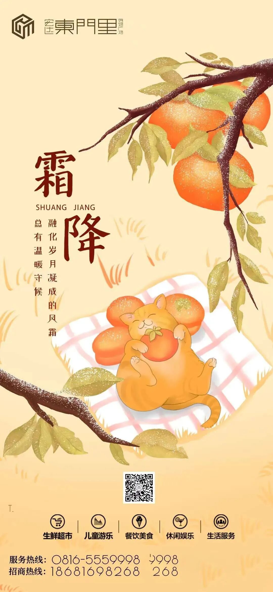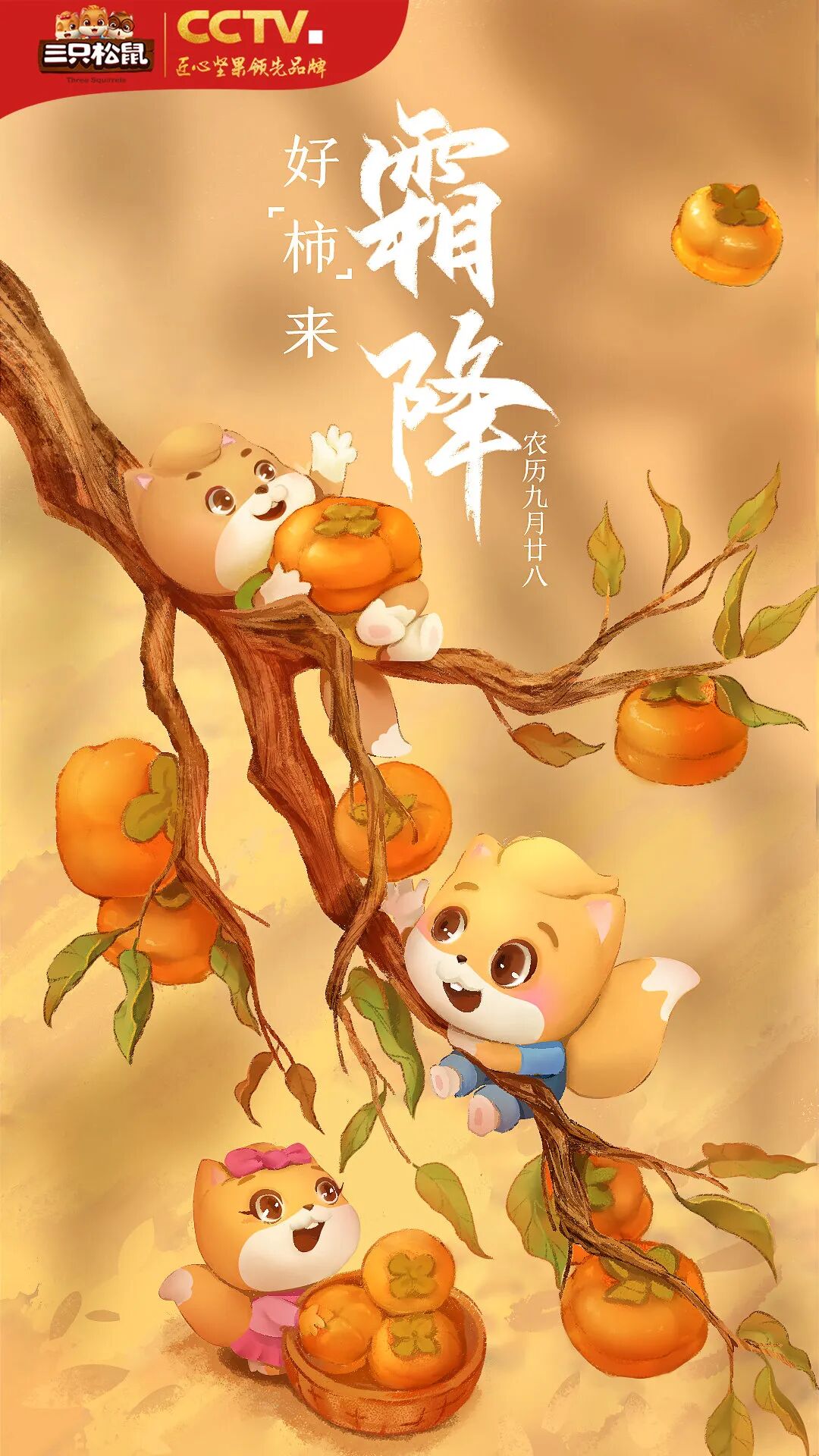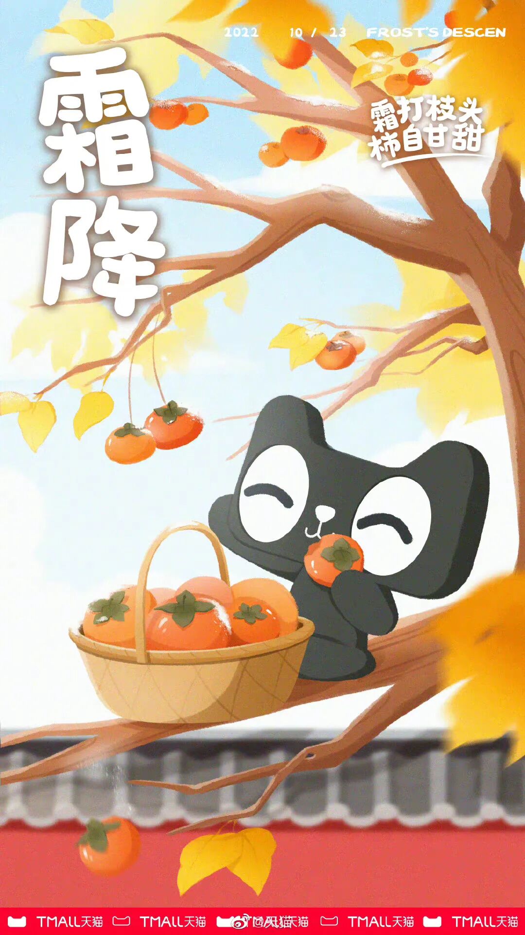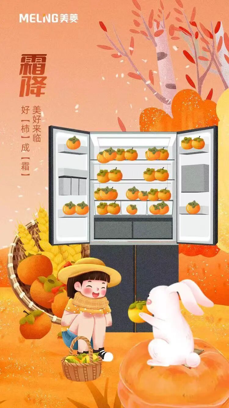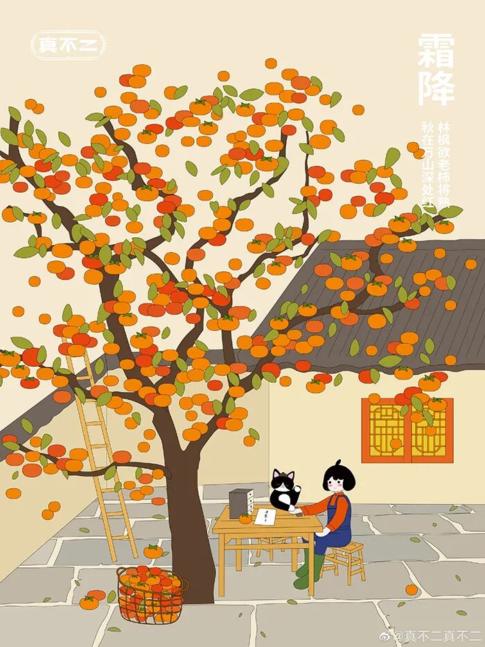喵~霜降至,秋末叶黄柿红蟹肥美。霜挂枝头,不妨邀请三五好友一同赏菊尝柿,好柿成双!
