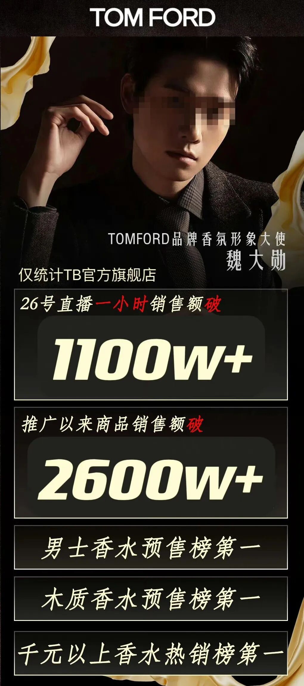 之后评估他的人气依然稳固,且跟品牌香水也契合,就又找了他做香氛形象大使,用符合品牌调性的短片,加深了他和代言香水之间的联系。仅一场直播,销售额就飙到了1100W+。