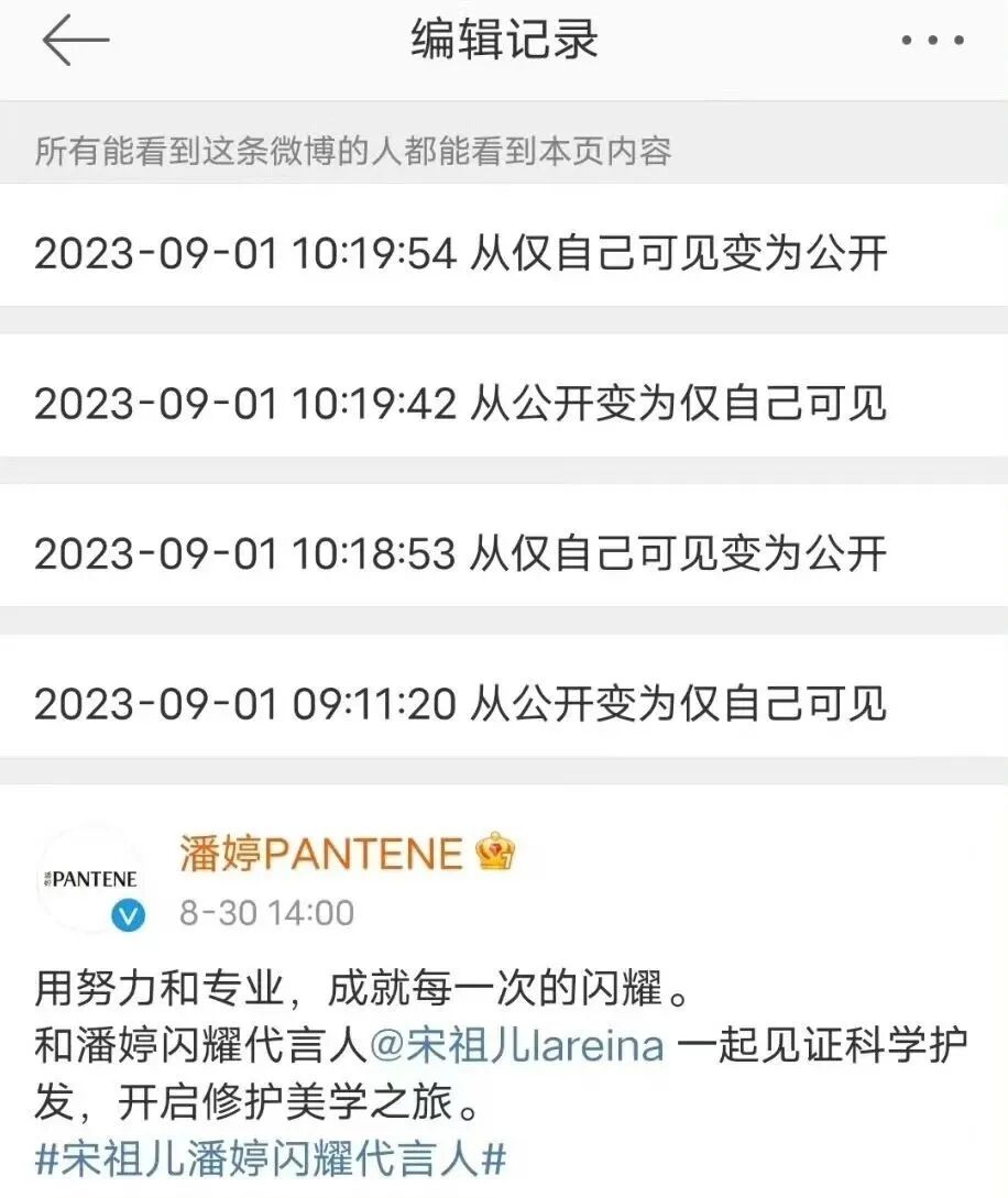 不要像之前潘婷那样,因为艺人塌房,官博被骂就不知道怎么办才好,一会儿把微博设置成仅自己可见,一会儿又重新公开。